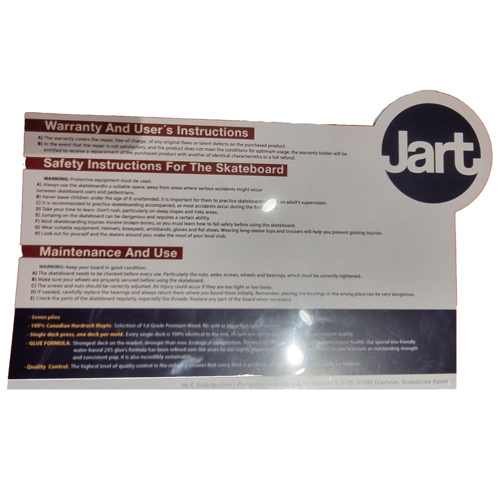 Jart Skateboards fue fundada en España y es conocida por sus tablas de alta calidad fabricadas con métodos respetuosos con el medio ambiente. La marca atrae a skaters que buscan una buena tabla europea y que valoran la sostenibilidad. Jart es conocida por sus productos duraderos y bien elaborados. Los diseños son creativos y a menudo únicos. Perfecto para skaters que desean combinar calidad y conciencia ambiental.