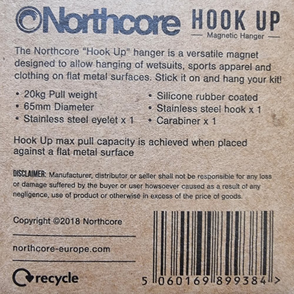 La percha Northcore Hook Up es un imán versátil recubierto de caucho de silicona diseñado para permitir colgar trajes de neopreno, ropa deportiva y ropa en superficies metálicas planas. La percha "Hook Up" es ideal para viajes por carretera y campamentos, ya que los artÃculos se pueden colgar de las puertas y puertas traseras de los automóviles sin temor a rayar la pintura o que se caigan, ya que el imán de 65 mm de diámetro tiene una tensión de tracción de 20 kg * que es lo suficientemente resistente para sostener fácilmente un traje de neopreno de invierno de 6 mm empapado. ¡Pégalo y cuelga tu kit!