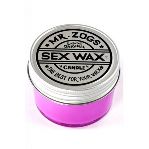 Las velas Sex Wax tienen mechas sin plomo y están contenidas en un frasco de vidrio transparente de 4 oz.